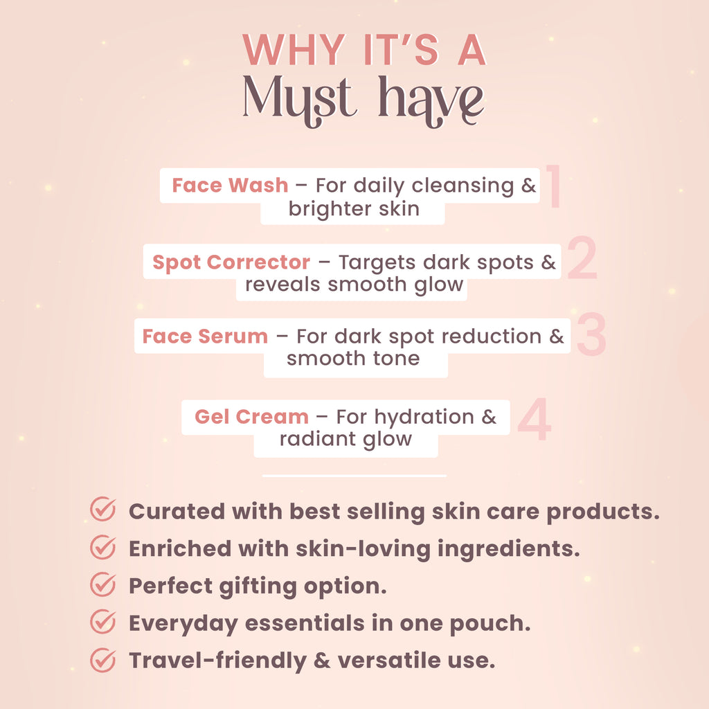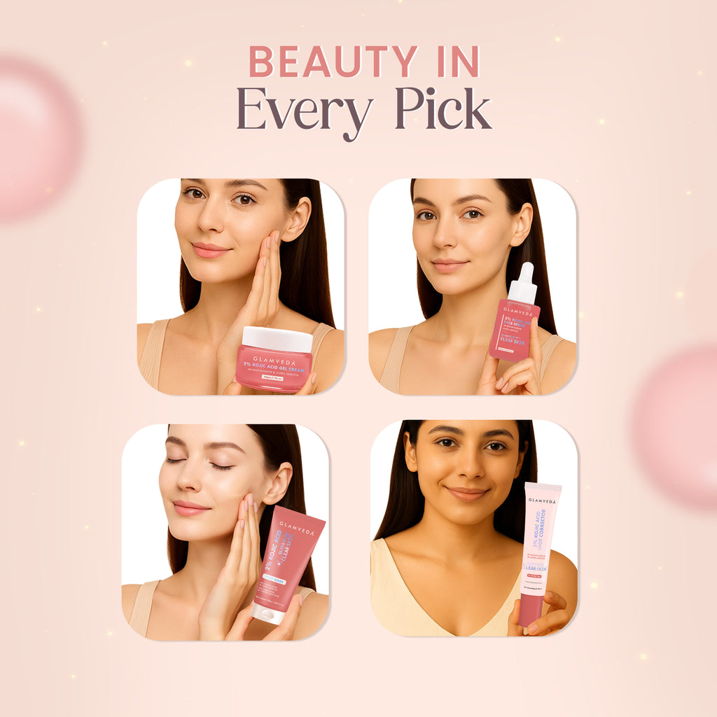 Kojic acid, Niacinamide, Alpha arbutin, Salicylic acid, Hyaluronic acid
