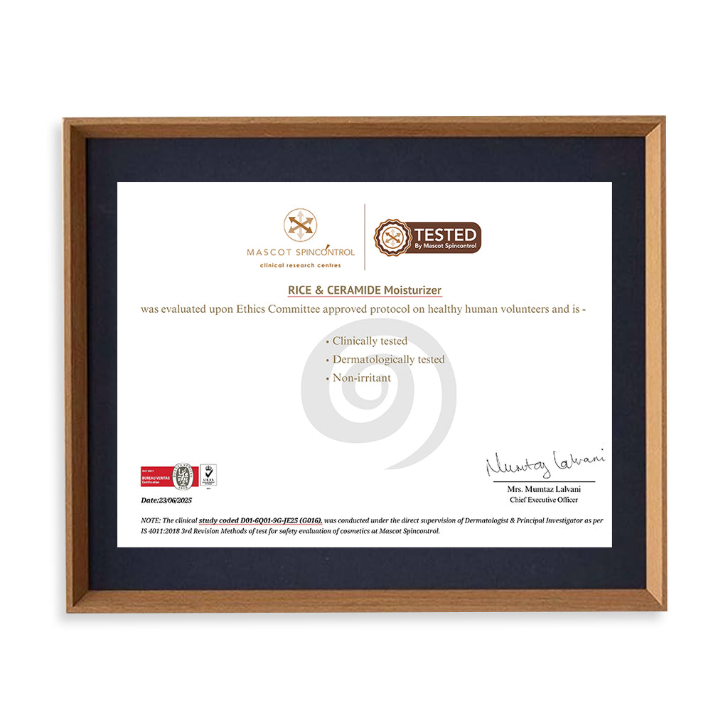Aqua, Ethylhexyl Methoxycinnamate, Caprylic Capric Triglyceride, Glycerol Monostearate, Isopropyl Myristate, Peg-100 Stearate and Glyceryl Stearate, Propylene Glycol, Celyl Alcohol, light Liquid Paraffin, Dimethicone, Propanediol, Polyacrylate-13, polyisobutene, Polysorbate 20, Almond Oil, Ceto Stearyl Alcohol, Stearic Acid, Acrylates/C10-30 Alkyl Acrylate Crosspolymer, Phenoxyethanol and Ethylhexylglycerin, Dimethylsilanol Hyaluronate, Silanetriol and Hyaluronic acid, Sodium Hyaluronate, Rice Water, Vitamin E, Allantoin, Titanium Dioxide, Ceramide-1, Ceramide-2, Ceramide-3, Ceramide-4, Ceramide-6, EDTA Disodium, Grapeseed Oil, Argan Oil, Fragrance.