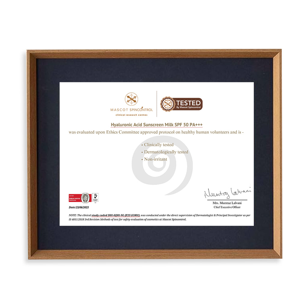 Aqua, Ethylhexyl Methoxycinnamate, B u t y l M e t h o x y d i b e n z o y l m e t h a n e , Octocrylene, Glycerine, Butylene glycol, D i m e t h i c o n e , N a t u r a l B e t a i n e , Phenoxyethanol, Ethylhexylglycerin, Sodium Stearoyl Glutamate, Xanthan Gum, Zemea, Titanium dioxide, Aloe Barbadensis Extract, Sodium Polyacrylate, Almond oil, S o d i u m G l u c o n a t e , T o c o p h e r o l Acetate, Ceramide, Niacinamide, Multi peptide, Hyaluronic Acid